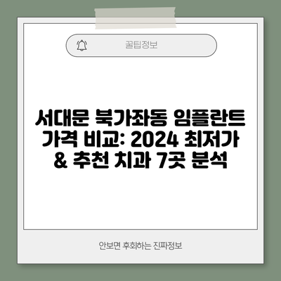 서대문 북가좌동 최저가 임플란트 가격은 얼마일까요? 7곳 치과 비교분석 결과와 주의사항을 지금 확인하세요!