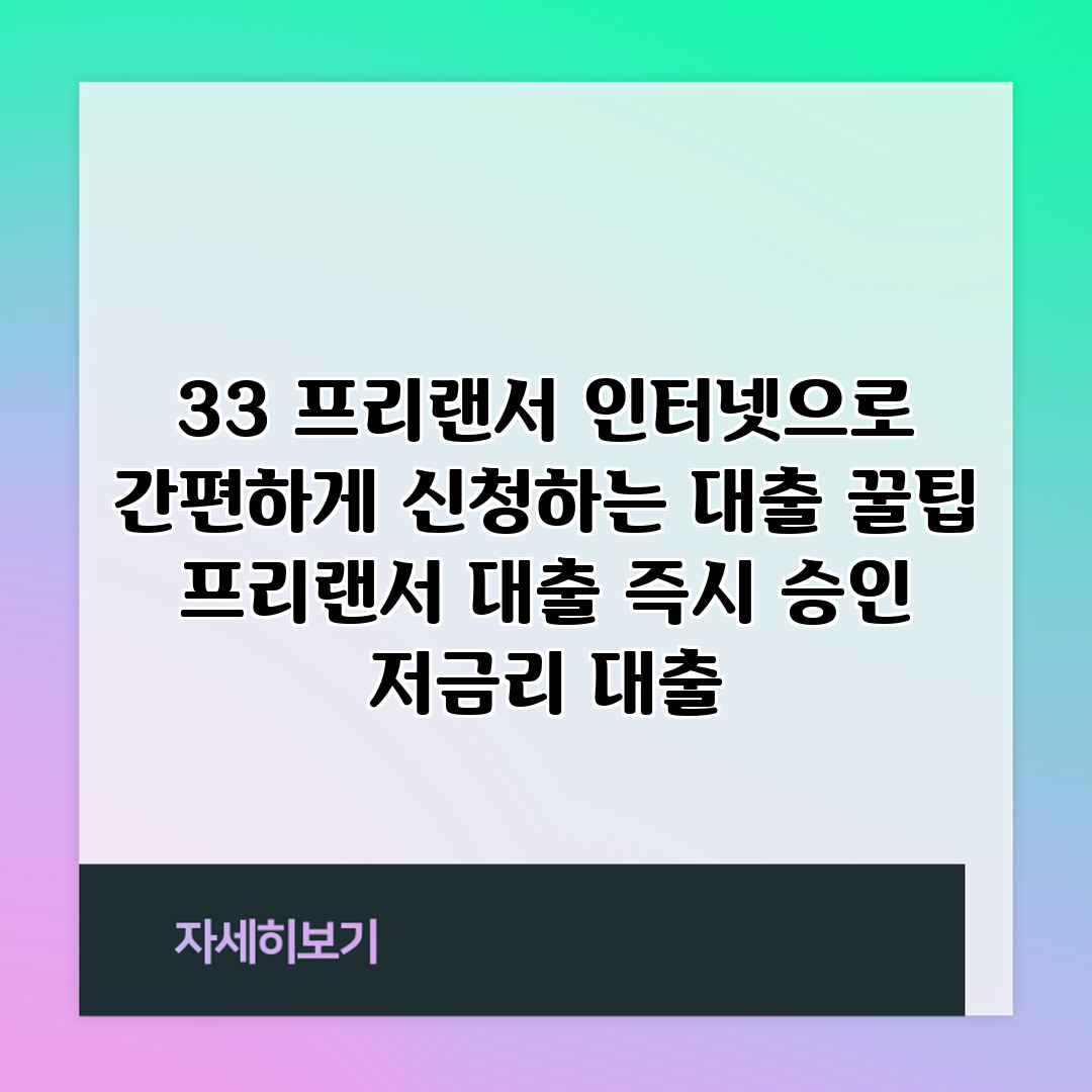 갑작스러운 자금이 필요할 때의 고민, 프리랜서라면 더욱 공감할 수 있는 부분입니다. 안정적인 소득이 부족하고, 은행 절차는 복잡하니 막막하게 느낄 수 있습니다. 그러나 걱정하지 마세요! 요즘은 프리랜서 전용 금융 상품이 많아졌고, 간편하게 인터넷으로 신청할 수 있습니다.