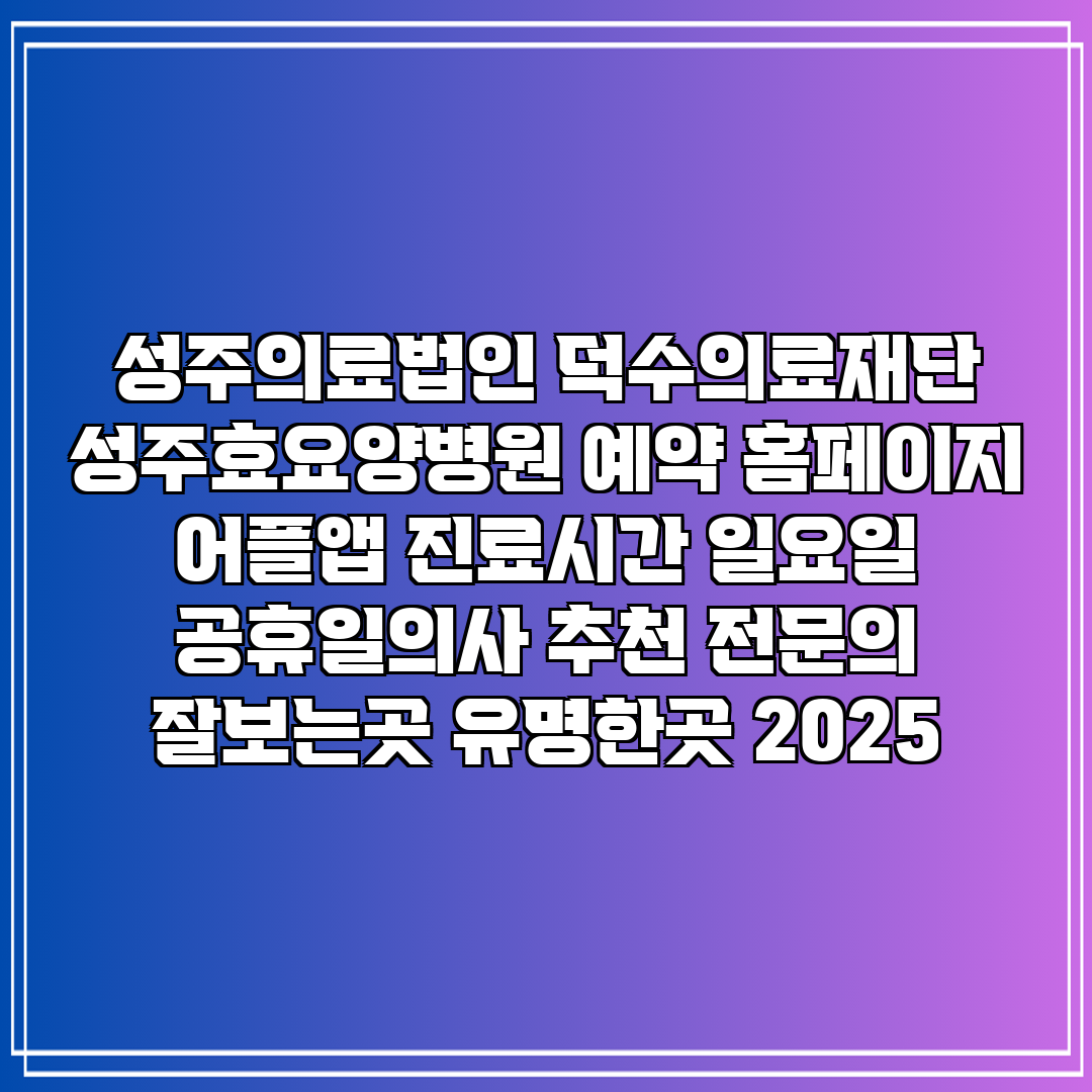 💡 성주효요양병원에서 헬스케어의 새로운 기준을 확인해 보세요. 💡