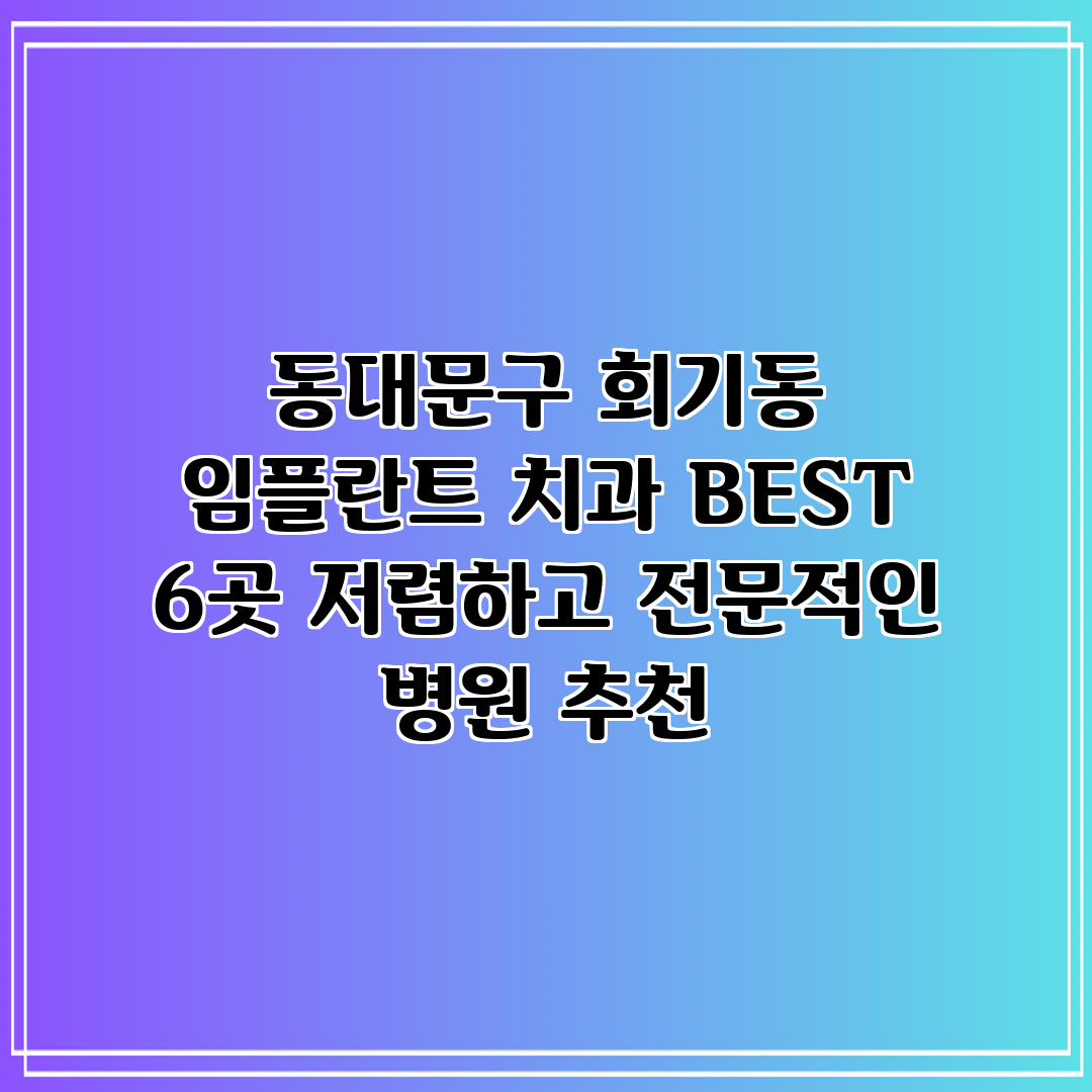 A: 회기동에서 임플란트를 고려할 경우, 가격, 전문성과 고객 후기를 종합적으로 비교하여 선택하는 것이 중요합니다. 본 글에서는 저렴하고 전문적인 BEST 6곳을 추천하므로, 이를 참고하시면 도움이 될 것입니다.