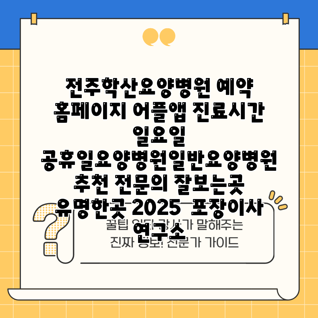 💡 전주학산요양병원 예약 방법 및 진료시간을 지금 알아보세요! 💡