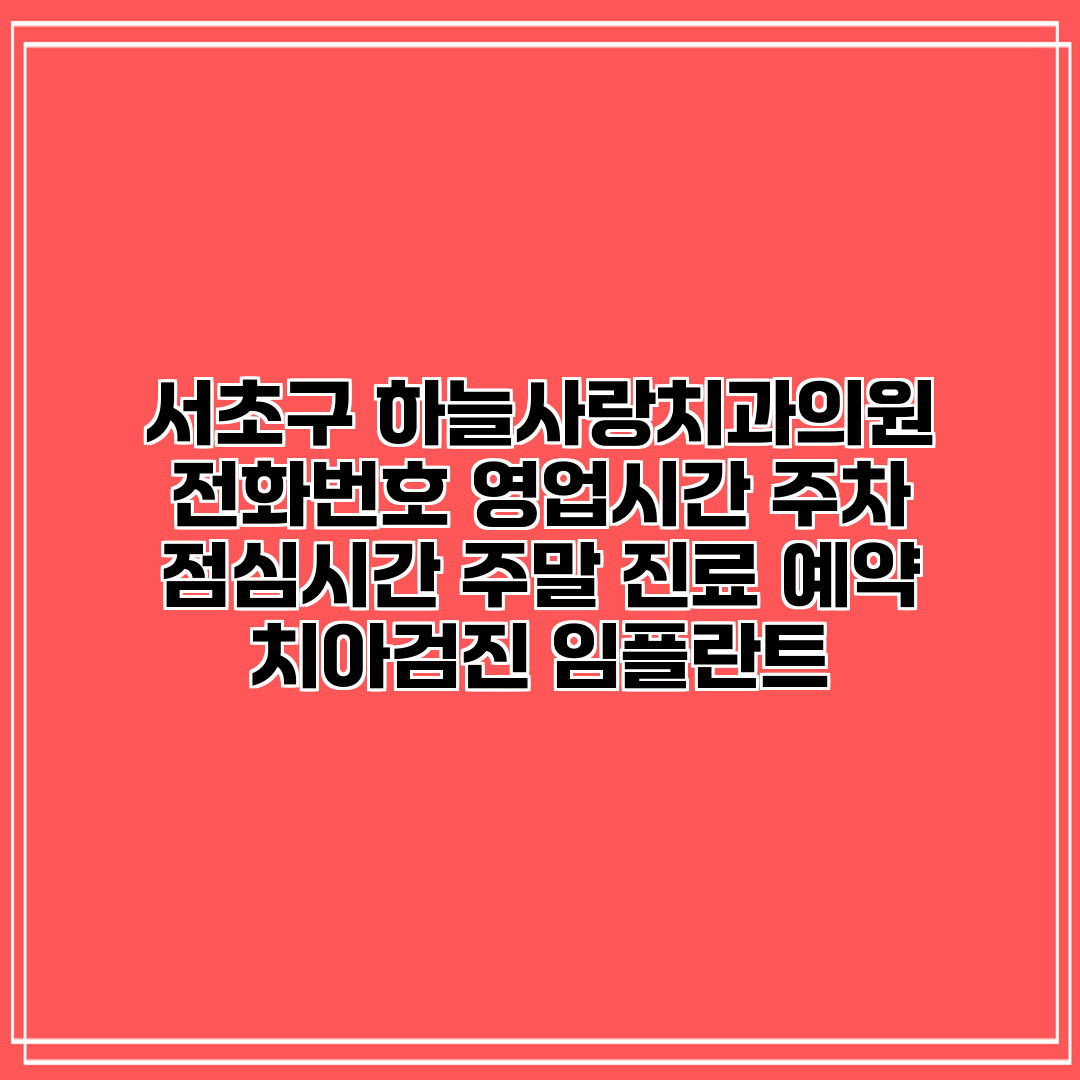 💡 서초구 하늘사랑치과의원의 진료 시간과 예약 정보를 지금 확인해 보세요. 💡