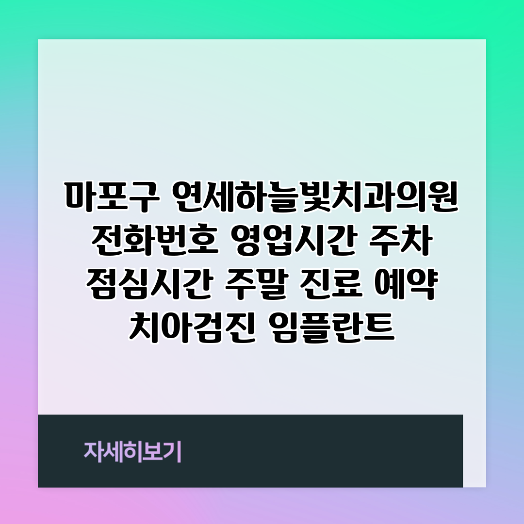💡 마포구 연세하늘빛치과의원에 대한 모든 정보를 확인해 보세요. 💡