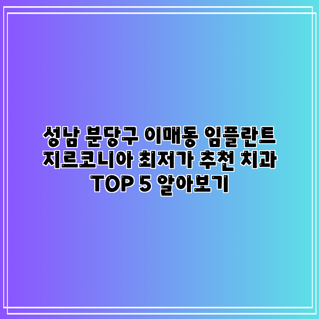 💡 성남 분당구 이매동 임플란트에 대한 최저가 정보를 지금 바로 알아보세요! 💡