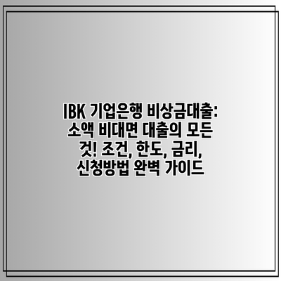 IBK 기업은행 비상금대출: 소액 비대면 대출의 모든 것! 조건, 한도, 금리, 신청방법 완벽 가이드