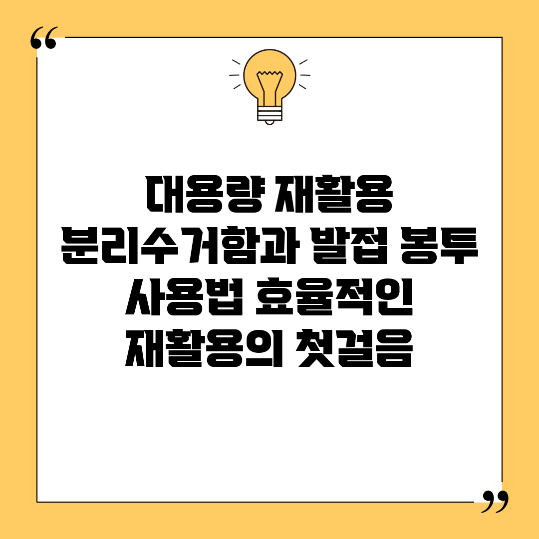 대용량 재활용 분리수거함과 발접 봉투 사용법 효율적인 재활용의 첫걸음